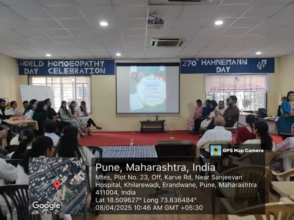 b) Med IQ Intercollegiate Quiz Competition was organized on 8th April 2025. 5 Homoeopathic Colleges from Pune participated in this competition. Dr. Sanjeev Manohar Dole, an eminent Homoeopath from Pune, was the Chief Guest.